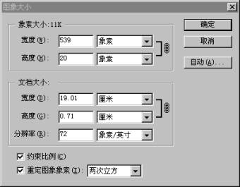 (1)象素大小——在这里,它显示的是单前图像的大小,可以通过重新设置图像的宽度和高度来改变图像的大小。如果选择了约束比例选项,会出现右边的链条,表示图像的宽度和高度将始终保持原始比例。