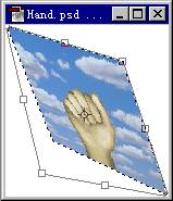(1)斜切不仅是将其倾斜一定的角度,它还可以把图像扭曲、伸展、和变形。就好像一块橡皮泥一样,可以任意变换。它可以使选取对象在所有可能的方向上扭曲,我们只需拖动控制手柄并拖动选取区域就能够完成这种操作。完成后只需按回车键即可。如图6-29所示是一幅经过斜切后的效果图。