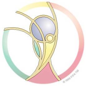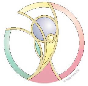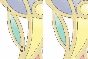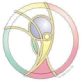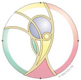 观察会标图像的结构,接下来要描绘中间分枝部分。当然要使用钢笔工具。注意要尽量使用较少的节点反复调节曲率来实现。在与外圈相接的部分要少长出一点(过程略)。