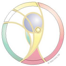 我们来通过2002韩日世界杯的会标来练习在Photoshop 6或7中路径的描图和组合运算。首先到网上找一幅世界杯会标图案(见图1),虽然尺寸有点小,但作为路径描绘参考也足够了。