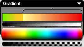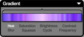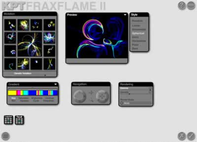 在这里你可以选择不同的预览模式来查看你的图像你可以使用 Gradient 面板对分形的颜色、阴影、透明度、对比度、色调、饱和度等一系列参数进行调整。这个面板的使用方法我们将放在下一个滤镜 KPT Gradient Lab 中再作详细讲解。