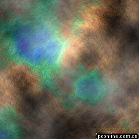 2.将色板复位,设置前景色为RGB(0,51,102),填充。执行渲染>分层云彩若干次,直到满意。(图01)