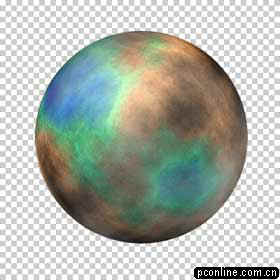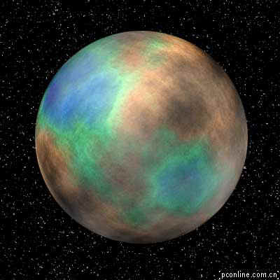 8.最后我们来制作一个简单的背景:选择背景层,填充黑色,用添加杂色命令,数量为55%,平均分布,单色;再用滤镜>像素化>晶格化,单元格大小为3;最后,用色阶调整复合通道:输入55,0.21,151即可。(图7星球)