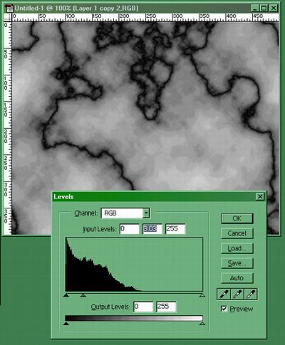 5、然后,选择菜单Image>Adjust>Levels,按图所示调整色阶,得到和图相似的效果。