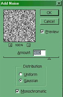 8、再次新建一层,用白色填充,然后命名为“Lines”,应用滤镜Filter>Noise>Add noise,如图所示设置。