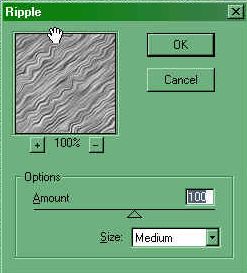 10、接着使用滤镜Filter>Distort>Ripple,如图所示设置,然后设置“Lines”层的叠加方式为“Soft Light”。