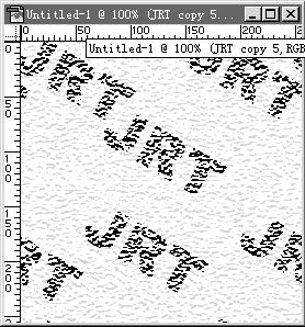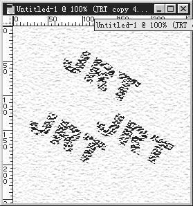 图三4. 选择菜单Layer->Duplicate Layer,复制该文字层,并 重复这一操作,得到文字层的2个复制品;将每个复制 层经动,得到大致如图四的结果,并选择Layer-> Flatten Image合并所有层。