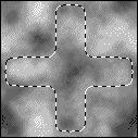 3 选择filter->other->offset,水平和垂直的距离各250像素,并选中wrap around选项。4 大家可以看到,图片中央有十字型的接痕,利用套索工具(快捷键L)在图片中央选择一个交叉型的十字,选择select->feather,数值16,如图二。5 再运行一遍clound滤镜,现在中间的接痕消失了,而且图片实现了无缝。说明,十字选择法的关键是第4步,不管原纹理是用什么滤镜生成了,只要在第3和第4部之后,重复一次就可以得到完美的无缝效果。对于照片素材,可以保存选区,把第3步之前的原图片中间的十字部分覆盖到第3步之后的图片以覆盖中央十字型的接痕。总之十字选择法可以有很多种应用方式,大家大可以举一反三。图二(二)交错拼接法接下来给大家讲的方法很有趣,好像小时候玩拼图一般。1 新建大小为250X250dpi的文件,运行clound滤镜。2 全选该图(快捷键CTRL+A),并选择edit->copy。3 选择image->canvas size,把图像大小改变为500x500dpi,把起始锚(anchor)设置到左上角。4 选择edit->paste,选择edit->transform->filp horizontal,并把新层放到图片右上角。5 选择edit->paste,选择edit->transform->filp vertical,并把新层放到图片左下角。6 选择edit->paste,选择edit->transform->filp vertical,再选择edit->transform->filp vertical,并把新层放到图片右下角。(见图三)7 选择layer->merge visible,好,你现在就有了一个无缝纹理了。接下来,我们要正式开始学习各种纹理效果了。