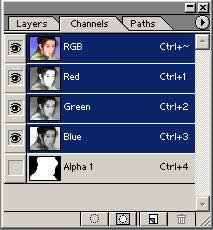 因为许多朋友对通道不是很熟悉,所以我们还是要简要地介绍一下基本的通道概念。在PHOTOSHOP中有三种通道,一种是存储图像内有关色彩信息的色彩通道(Color Channel),第二种是存储选择范围的阿尔法通道(Alpha Channel),还有一种就是存储特别色信息的Spot通道。有关它们的基本功能,请参阅相关的PHOTOSHOP文章。