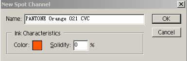 首先我们在通道面板的弹出菜单中选取New Spot Channel (新建特别色通道)命令,接着就会出现新建特别色通道对话框。