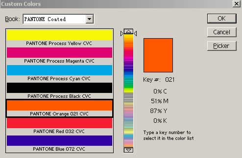 在BOOK(颜色表)中有很多的色标,选取最常用的PANTONE Coated色标,然后选择一个特别色,点击OK。回到新建特别色通道对话框,在Solidity栏中设定特别色的预览不透明度。什么是预览不透明度?实际就是特别色的不透明度,但这并不影响实际打印效果,它只是作为一个在屏幕上的预览效果出现。