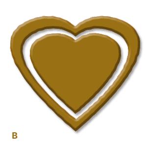 接着要把巧克力从平面状态变成立体的。复制“heart1”层命名为“heart2”,双击该层图标,打开layer style(图层样式)对话框,选择bevel and emboss效果,设定style为inner bevel,depth为500%。然后开起drop shadow,将opacity改为75%。简简单单的两步,一块富有立体感的巧克力便呈现在了眼前。(图B)
