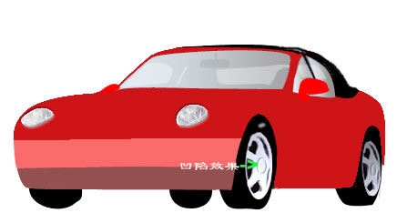 a.观察中发现车前灯具有凹陷的效果,因此我们双击“前车灯”图层,打开“layer style”对话框。选中“belvel and emboss”项后将“style”设为pillow emboss,“depth”设为1%,“angle”为120度,点击确定。