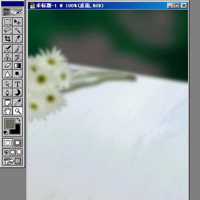 4)桌上是放了一束花的,现在来画花。新建一层,用大小约17的画笔,设置大小渐隐步长为15,拖出花的形状,这里的颜色是188/191/172。随便拖就行,等一下还要模糊的。再改变颜色画出花心。(04)
