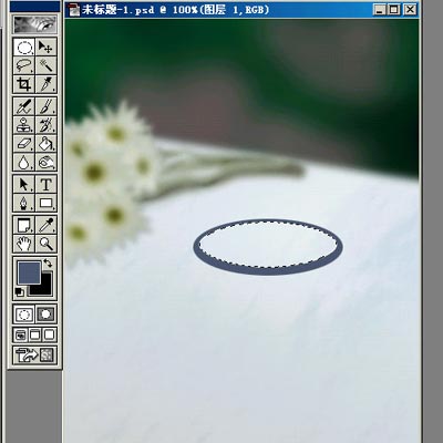 7)新建一层,画椭圆,填充蓝黑色(71/88/111),将选区储存为ALPHA1,等会儿要用。将选区收缩约6个像素,向上移动几个像素后,