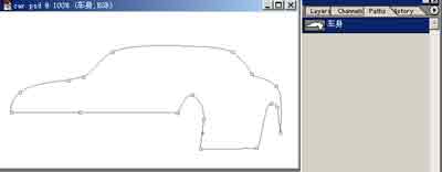 3. 选择路径面板(paths),双击“work path”项,在弹出的“rename path”对话框中将路径名改为“车身”。请注意:为路径命名是一个好习惯,在路径和图层众多的时候可以大大提高工作效率!