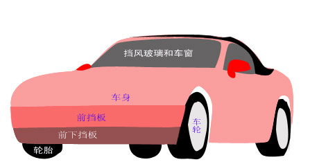 1.车身是汽车的主体,因此我们先为车身部份着色以便区别: