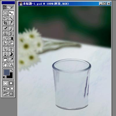 18)这时发现火的上面有部分被“杯口”层遮住了。可以用橡皮檫檫掉杯口层中火的部分,如果不想破坏杯口,可用矩形选出火的上部分,粘贴出来,放到杯口层的上面。现在基本上完成了,在杯口上喷点紫红色作为火的反光。(18)