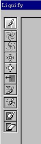 图2图3图2里,列出了10种工具。这10种工具是这个功能的主要操作工具。用他们我们可以将图象看做是一个融化的金属,任意的来实现我们想要的效果。这10种工具分别为: