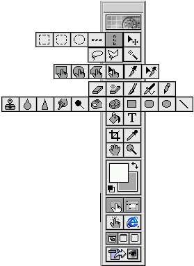 在Imageready3.0中我们最常用的就是它的工具箱了。在它的工具箱中包含了37中工具,可以说是应有尽有。下图中看到的就是全部工具箱展开时的所有工具。