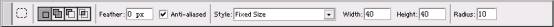 在这个工具栏中仅仅只有一个选项——Fixed Size(固定尺寸)。当这个选项选中以后,我们就可以在后面的With(宽度)和Height(高度)中填入矩形的尺寸。