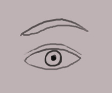 首先描绘眼睛的草图。值得注意的是,眼睛左边眼腺之处,线条是向下垂,到了底部又稍微向上翘的。我注意到不少人都忘记画泪腺。