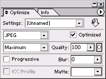 这个浮动面板的主要作用就是调节优化JPG、GIF、PGN格式图像的参数。