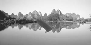 由于老鹰的大小、方向、位置等并不符合要求,就需要我们充分利用编辑菜单下变换命令中的缩放、旋转等操作并结合移动工具使老鹰似戏水状位于漓江之上(如图3)。到此,图像的合成基本完成,下面的润色将使效果更加逼真。