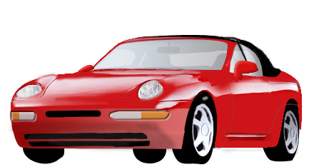 1.为车身表面加上线条。利用钢笔工具在车身上勾勒出表面的曲线,然后将前景色设为深红,用“stroke path”命令并选择笔刷为工具对所画曲线加以描边。考虑到实际效果中这些线条的明暗度是不一样的,向光的比背光的稍亮一点,因此我们还要对它们的不透明度加以适当的调整以符合实际效果。