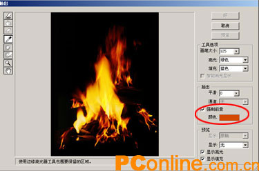 第二步,用边缘高光器工具,对边缘加亮,要使加亮边缘覆盖整个所要提取的范围,你可以选用大一点的笔刷,也可以改变填充颜色,看得更清楚。