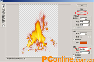 第三步:预览。如果提取后的图像看起来太亮了,那么就重新选取稍暗一点的强制前景色;如果图案太暗了,或是图像透明边缘处过渡的不够平滑,那就选择亮一点的前景色。你可以用预览窗口的“显示原稿”来选取新的前景色。在一切都满意之后,点击“好”来提取图像,(图03)这时的图像应该是透明的背景。