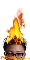 常识告诉我们,一般情况下,烟总是伴随着火的,(我们这位老兄的脑袋可不像煤气灶一样着火不冒烟)这次我们还是让Photoshop来自力更生吧!