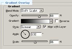 在数字美术作品的创作过程中,经常会遇到这样看似无意义的步骤,而实际上并非如此,三到五个这样的操作,将使作品的质量得到相当的完善。而这些往往被初学者忽略,因为他们更感兴趣于变化明显的操作这一步的变化也不明显,我之所以要选择Gradient Overlay子项,目的有两个,第一是因为前一步的结果,鲜艳的青色还较多,如果这个按钮是用于网页的,那就没必要再作这一步,但对于印刷来说,较亮的青色是几乎印不出来的。