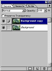 2. 在Layer工作面板上,按住background层,拖至下面的Creat new layer 图标上,创建一个新层,如图:
