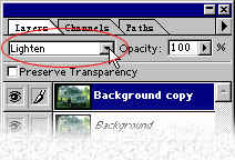 在Layer工作面板上,将Background copy层的合成模式改为Lighten,如图: