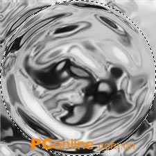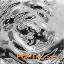 1.新建一个225x225像素的文档,将色板复位,用云彩滤镜渲染,选择模糊>径向模糊,数量为40,模糊方法为旋转;高斯模糊,半径为2;素描>基底凸现,细节为13,平滑度为10;再用素描>铬黄滤镜,细节为5,平滑度为2;复制一层,将混合模式改为“柔光”,合并图层,得到的效果如图03。