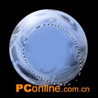 2.将这个金属球拖移到上拷贝文档上来,移动到合适位置,缩放到大约为94%,载入通道1的选区,反选删除后取消选择。(这一步要有些耐心,也许你不会一次就放的很准,多试试吧!)(图11)