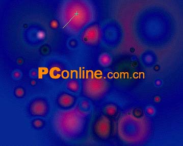 5.现在,大量重复渐变过程,不过现在要使渐变半径小的多。在画布上随意的做出渐变,只要将鼠标拖动的距离小一些就可以了。注意,要使渐变的半径有所变化。要是你的图看起来象图05,那就差不多了。