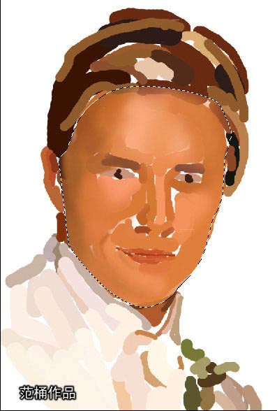 3.把五官周围的大致颜色铺垫出来,用选区选定,用画笔(压力不要太高,容易控制,以下步骤也是一样)把色块过度连接起来。