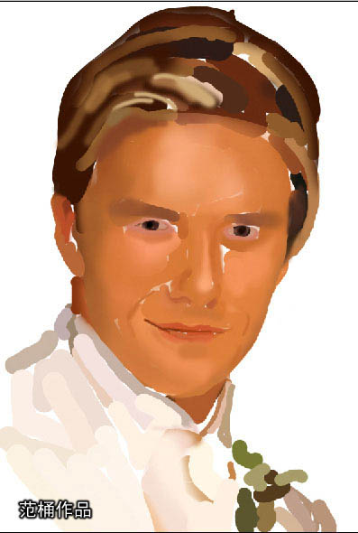 4.把头发的色块进一步细分,同时把脸部的一些阴影表现出来(用画笔)。