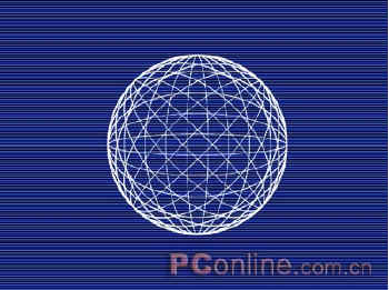 (5)将所有线框合并为一个图层,再次新建一个动作序列。对合并后的图层1再进行旋转复制,按下Ctrl+T键启用自由变换命令,按住Alt键将图形旋转45度,然后连续播放刚才录制的动作,生成网格球体,效果如图5所示。