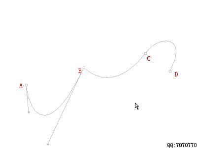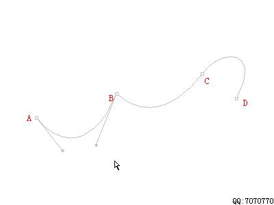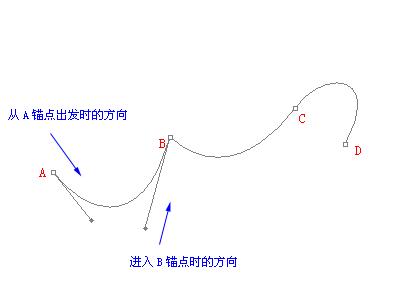 对于这条曲线上的除了起点和终点的BC两个锚点而言,都存在两条方向线: