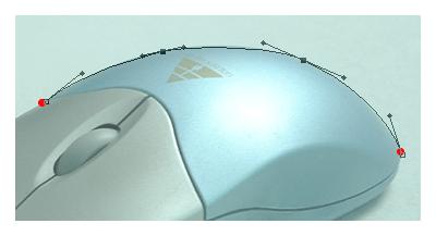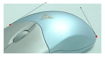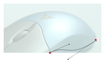 实际上随着鼠标移动的是“去向”这条方向线,而“来向”方向总是与之成180度水平夹角的,并且长度也相同.所以,虽然本来我们应该把第二个锚点的“去向”定为右上方,但是为了“来向”的正确,不得已先将其定在右下方,然后在完成绘制后,再单独修改其“去向”.这种方法可以形容为“丢去保来”(同理,也可以“丢来保去”),在绘制数量较多的锚点时就显得很不方便,因为总看不到正确的曲线