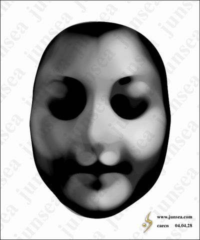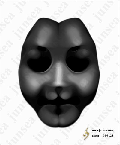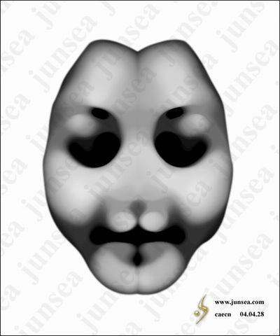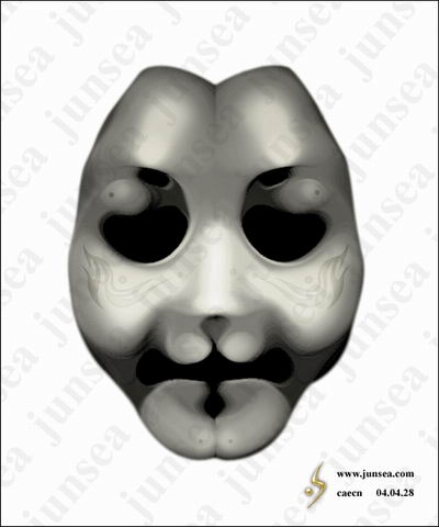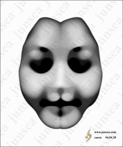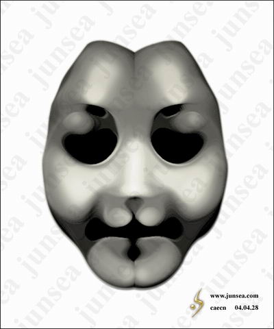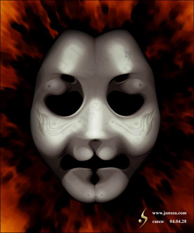 15.用鼠标双击最下面的脸的图层,钩选内阴影效果,将不透明度设置为15%,距离设置为0个象素,大小设置为25个象素。好了,一个诡异的面具就完成了,如对颜色不满,可通过调节色相、饱和度、明暗来实现。大家还可以在背景图层上发挥想象做一个阴森一点的底纹,那样面具就会被烘托得更诡异了。不同的脸形,不同的表情,按照相同的步骤去做,便能做出各种不同样式的面具来,大家可以试试(图18)。