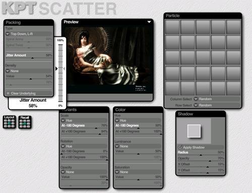 如果想要去除原图表面的污点或在图像中创建各种微粒运动的效果,Scatter滤镜就有用武之地了。甚至可以通过该滤镜控制每一个质点的具体放置、颜色、阴影等。(