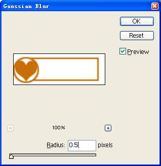 10、描边以后的长方形边缘显得很生硬,为此我们还要使用模糊滤镜,来将边缘模糊一下;将鼠标移动到主菜单Filter中的Blur子菜单项上,同时用鼠标单击Gaussian Blur命令,在随后弹出的参数设置框中(如图6所示)来设置高斯模糊效果;