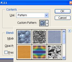 12、将鼠标移动到工具条中的矩形选择工具按钮上,利用该按钮在画布上绘制一个矩形,让其尺寸略小于画布尺寸,同时新建一个图层;然后执行edit/fill命令,在随后打开的如图8所示的设置框中,