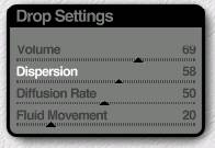 Fluid Movement 参数设置的是模拟墨水滴在水中移动效果的强度。这个参数设置的越小,其效果越近似于墨水滴落在画布上,反之,效果则类似与墨水与另一种液体混合的效果。