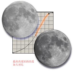 还有一点是你需要了解的:曲线不能同图片分离,也没有像万金油一样到哪里都能用的曲线。每张图片都是唯一的,所以它的曲线也是唯一的。图片之间最适合的曲线形态也许会大有不同。图片的中心也不同,有的是亮部(冰川上的北极熊),有的则是暗部(地下室煤堆上的黑猫),还有的是中间调部分(像上面例子中的人物)。现在你该知道如何对付不同的图片了:用鼠标点击需要调节的范围;在曲线上标出;改变曲线斜率以增加对比。下面是两个例子。(图16,17)