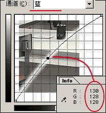 十分抱歉!我无法告诉你皮肤应该是什么颜色,也无法告诉你什么样的值适用于碧绿的草地或海军蓝,但中性色可以作为你的参考点。当然,不是每张图中都有中性色,但是如果你看一看,你就会惊讶的发现,有那么多的图使用了中性参考点:白色的衬衣,货车的轮胎,桌上的一张纸,块石路面上的沥青,白色的围栏,花岗岩建筑……你已经明白我的意思了,如果你需要一种中性色,那么在一种物体上找到的机会会是100%。那怎样才能选出那些颜色为信息面板中所示的像素呢?它当然不是中性色,蓝色值远远小于红色和绿色值。蓝色的反色是什么?是漂亮的黄色。把它假定为中性色,我们把蓝色加入其他颜色中。
